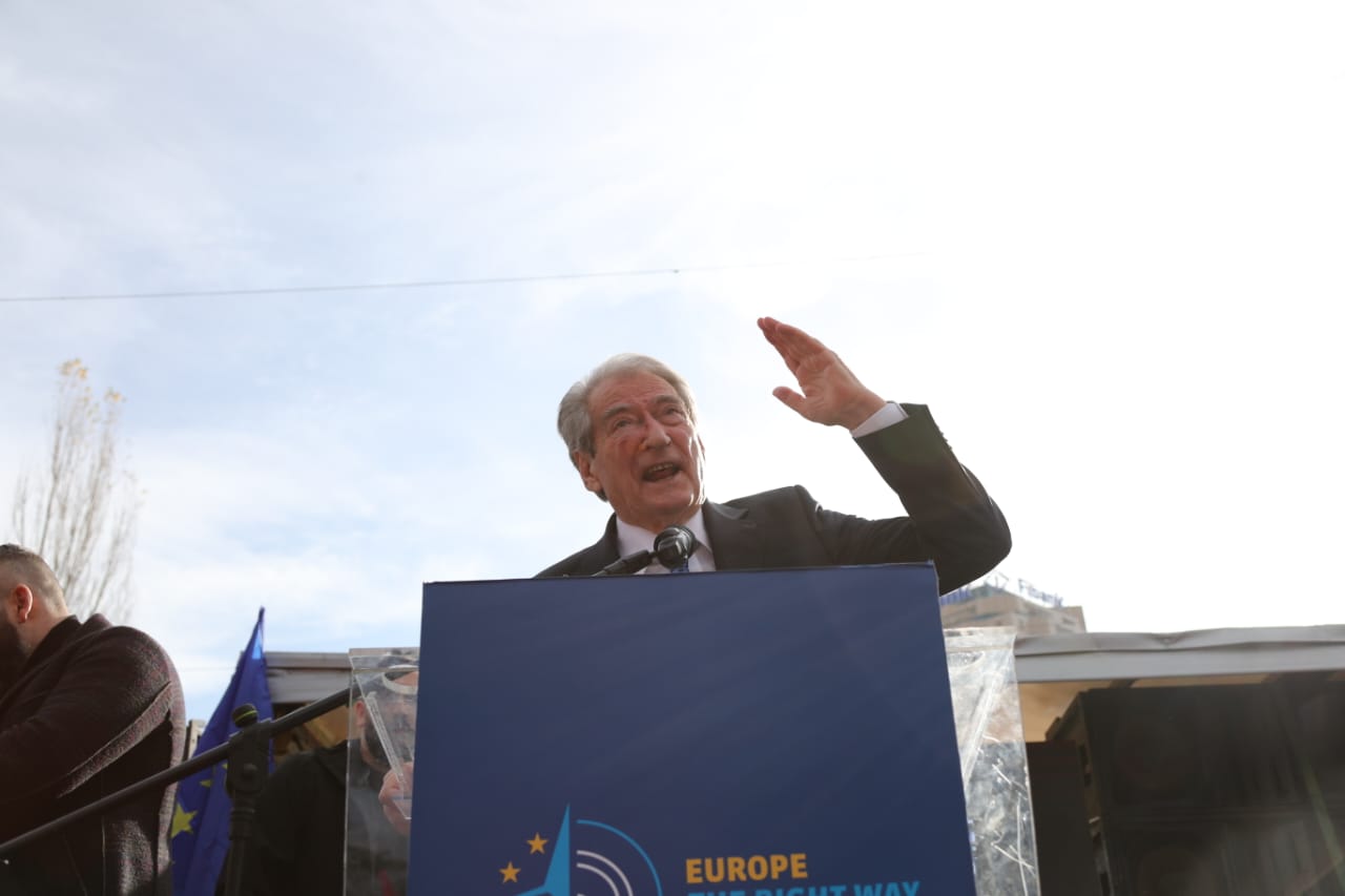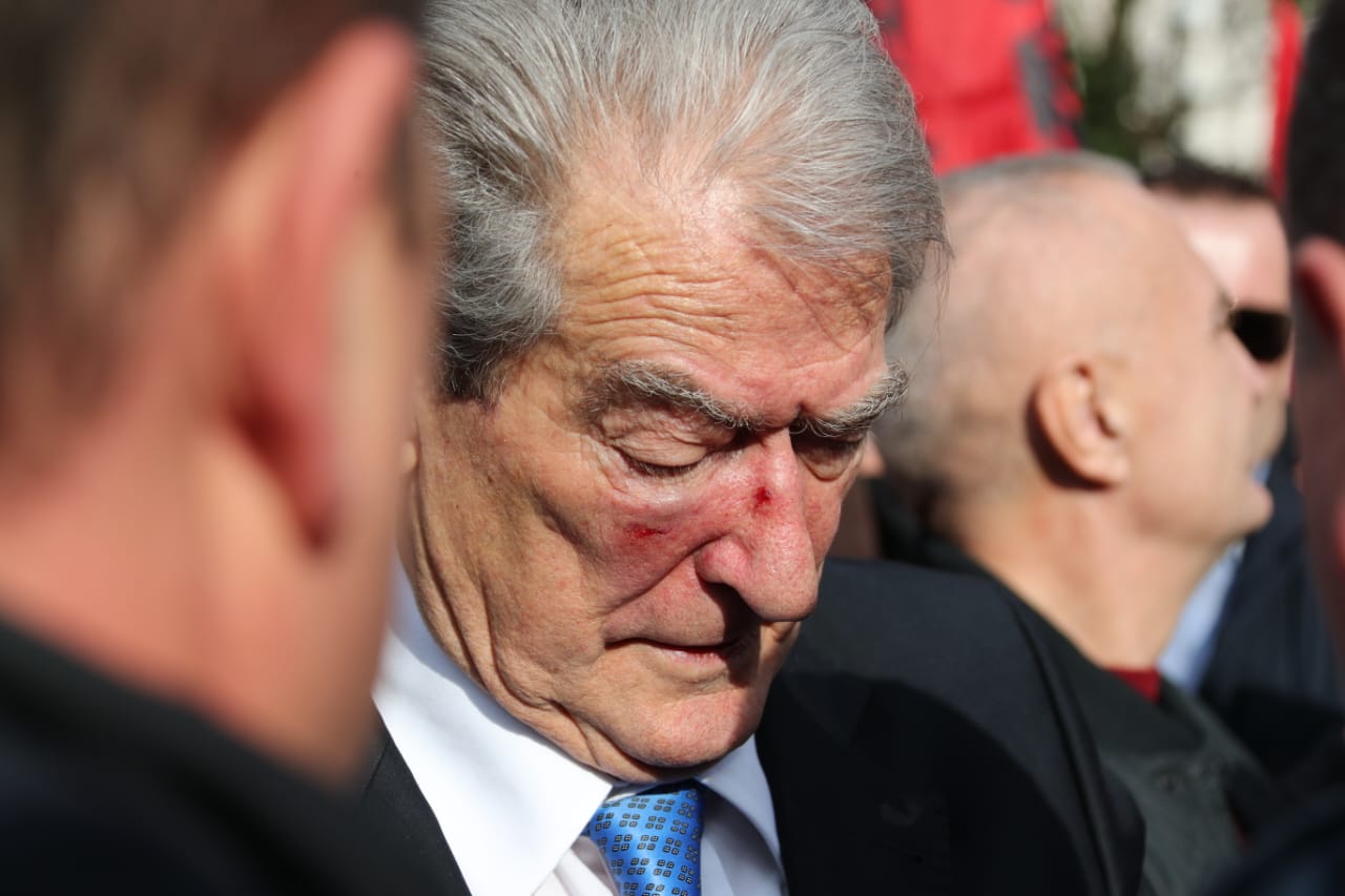Ο Σαλί Μπερίσα αφού στάθηκε για λίγα λεπτά στη λεωφόρο Dëshmorët e Kombit, στη συνέχεια ανέβηκε στην εξέδρα για να χαιρετήσει τους διαδηλωτές με το πρόσωπό του να έχει πρηστεί και να αιμορραγεί ελάχιστα.
