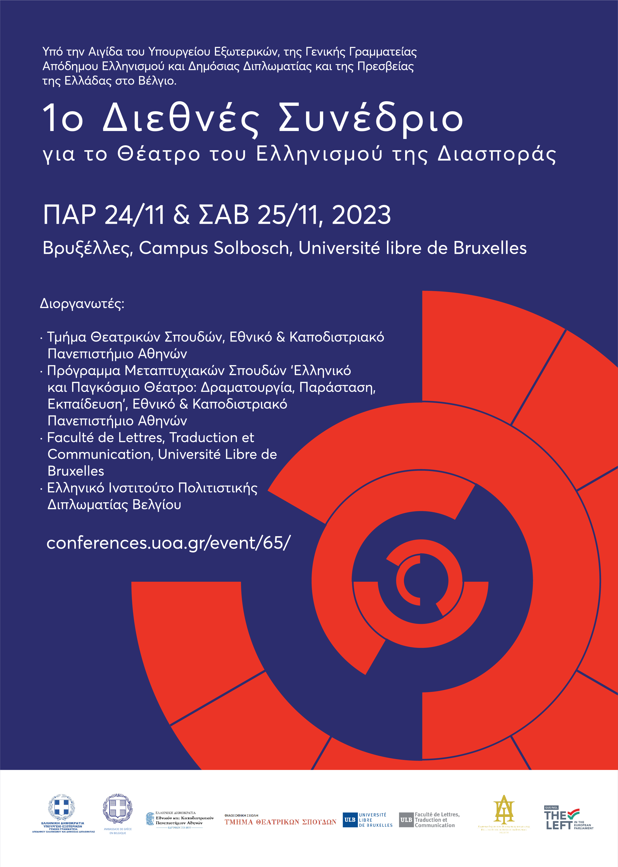 Στις Βρυξέλλες διοργανώνεται το 1ο Διεθνές Συνέδριο για το Θέατρο του Ελληνισμού της Διασποράς την Παρασκευή 24 και το Σάββατο 25 Νοεμβρίου.