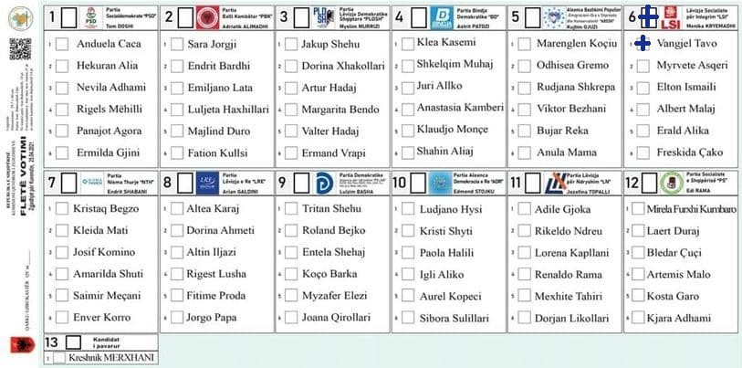 H Κεντρική Εκλογική Επιτροπή ενέκρινε την τελική μορφή του ψηφοδελτίου για τις εκλογές της 25ης Απριλίου. Ο Επίτροπος των Εκλογικών Εκλογών, Ilirjan Celibashi αποφάσισε ότι οι Αλβανοί πολίτες θα ψηφίσουν εκτός από το νούμερο του κόμματος θα ψηφίζουν και το όνομα του υποψήφιου βουλευτή που επιθυμούν του αντίστοιχου κόμματος.