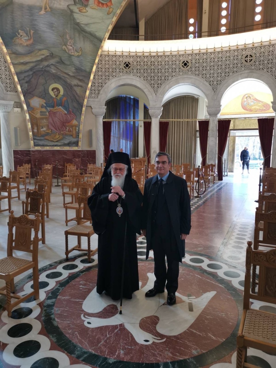 Με αφορμή την παρουσία του στα Τίρανα ο Υφυπουργός Προστασίας του Πολίτη κ. Οικονόμου είχε συνάντηση τη Δευτέρα 14 Μαρτίου με τον Αρχιεπίσκοπο Αλβανίας, Μακαριώτατο κ. Αναστάσιο, από τον οποίο ενημερώθηκε για το σπουδαίο κοινωνικό έργο που επιτελεί η Ορθόδοξη Εκκλησία στην Αλβανία. Μάλιστα ο Έλληνας υφυπουργός συνοδευόμενος από τον Αρχιεπίσκοπο Αλβανίας πραγματοποίησε προσκυνηματική επίσκεψη στον εμβληματικό Ιερό Ναό της Αναστάσεως.