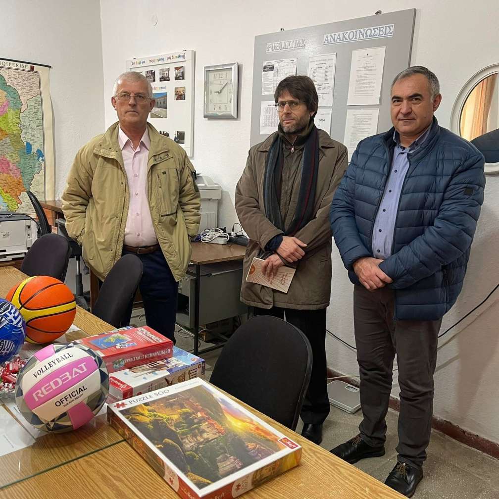 Προσέφερε στους μαθητές Χριστουγεννιάτικα δώρα, εκ μέρους της Ελληνικής Πρεσβείας στα Τίρανα και του Ελληνικού Γενικού Προξενείου Αργυροκάστρου, τους ευχήθηκε καλή πρόοδο και αντάλλαξε ευχές με τους Διευθυντές και τους καθηγητές των σχολείων.