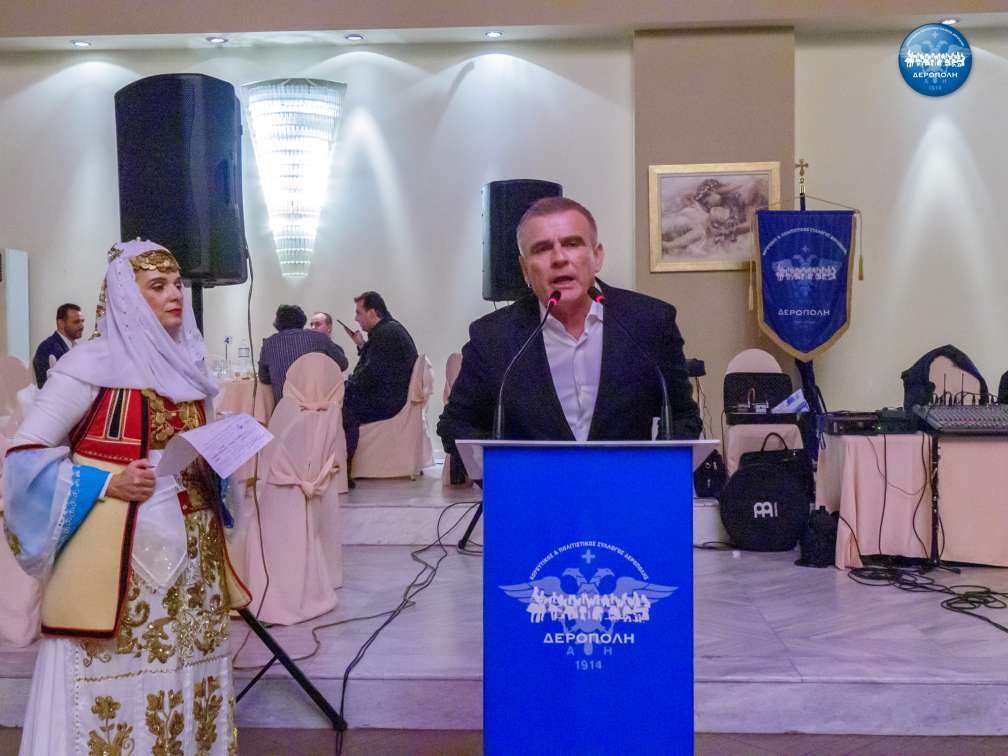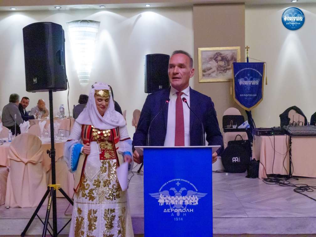 -Ο κ. Βαγγέλης Τάβος, πρώην υπουργός και βουλευτής στη Δερόπολη και στην περιφέρεια Αργυροκάστρου, ο οποίος έχει στηρίξει το σύλλογό μας από τα πρώτα μας βήματα και ταξίδεψε απ' τη Δερόπολη μόνον για να είναι μαζί μας.
