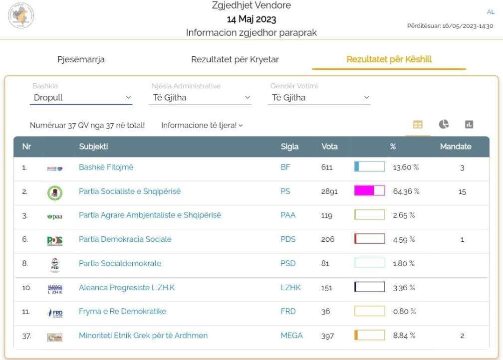 Ολοκληρώθηκε η καταμέτρηση των ψήφων των κομμάτων που αφορά την εκλογή δημοτικών συμβουλών στο Δήμο Δρόπολης .