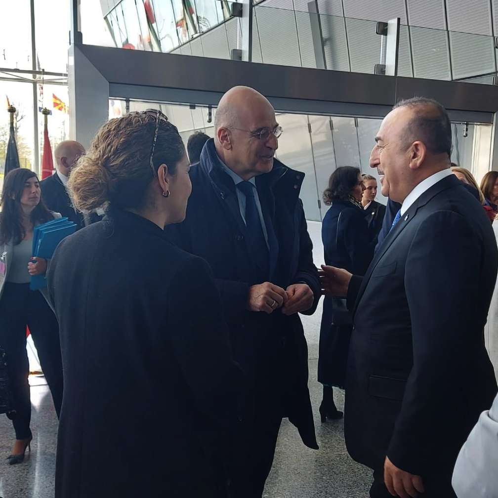 Σύντομη συνάντηση είχε ο υπουργός Εξωτερικών Νίκος Δένδιας με τον Τούρκο ομόλογό του Μεβλούτ Τσαβούσογλου στις Βρυξέλλες, στο περιθώριο της Συνόδου Υπουργών Εξωτερικών του ΝΑΤΟ.