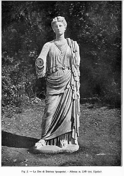 Εφόσον δεν ταίριαζε με κάποια από τις γνωστές θεότητες, ο Ugulini αποφάνθηκε πως πρόκειται για κάποια τοπική θεότητα της πόλης του Βουθρωτού. Την ονόμασε ΘΕΑ ΤΟΥ ΒΟΥΘΡΩΤΟΥ – DEA DI BUTRINTO – DEA E BUTRINTIT.
