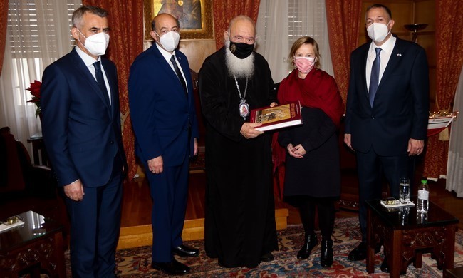Ο Αρχιεπίσκοπος, από την πλευρά του, αφού αναφέρθηκε στο ιδιαίτερο και σπουδαίο έργο που επιτελούν, υπογράμμισε την καλή συνεργασία που είχε με τον πρέσβη της Αμερικής στην Ελλάδα και μίλησε για διάφορα ζητήματα, όπως είναι η αναγνώριση της Εκκλησίας της Ουκρανίας. «Με το Οικουμενικό Πατριαρχείο είμαστε μια οικογένεια», τόνισε και εν συνεχεία μίλησε για το θέμα της Αγιάς Σοφιάς, αλλά και για την αξία της ως σημαντικού χώρου πολιτισμού. Τέλος, έκανε λόγο για το μεταναστευτικό ζήτημα, για να επισημάνει ότι η χώρα έχει πλέον φτάσει στα όριά της και κάλεσε τις υπόλοιπες ευρωπαϊκές χώρες να βοηθήσουν και να υπάρχει συνεργασία, ώστε να αντιμετωπιστεί η κατάσταση με αγάπη και προσφορά.